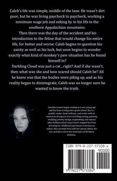 Caleb's life was simple, middle of the lane. He wasn't dirt poor, but he was living paycheck to paycheck, working a minimum wage job and eeking by in his life in the southern Appalachian mountains. Then there was the day of the accident and his introduction to the feline that would change his entire life, for better and worse. Caleb begins to question his sanity as well as his luck, but soon begins to wonder exactly what kind of monkey's paw situation has he found himself in? Darkling Cloud was just a cat...right? And if she wasn't, then what was she and how scared should Caleb be? All he knew was that the bodies were piling up, and as his reality began to disintegrate, Caleb was no longer sure he wanted to know the truth.