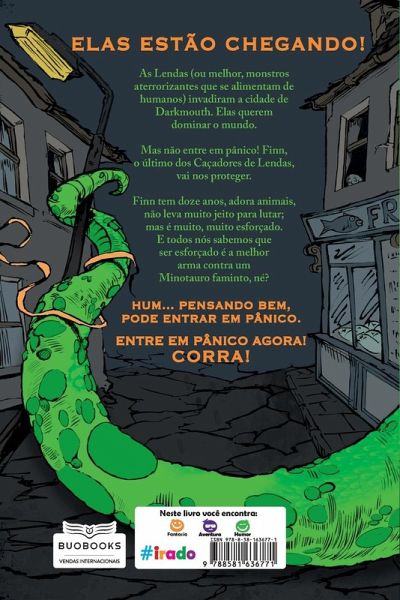 Elas estão chegando! As Lendas (ou melhor, monstros aterrorizantes que se alimentam de humanos) invadiram a cidade de Darkmouth. Elas querem dominar o mundo. Mas não entre em pânico! Finn, o último dos Caçadores de Lendas, vai nos proteger. Finn tem doze anos, adora animais, não leva muito jeito para lutar; mas é muito, muito esforçado. E todos nós sabemos que ser esforçado é a melhor arma contra um Minotauro faminto, né? Hum... Pensando bem, pode entrar em pânico. Entre em pânico agora! Corra!