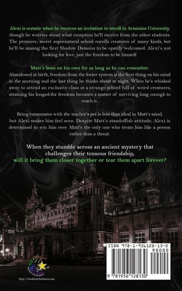 Alexi is ecstatic when he receives an invitation to enroll in Arminius University, though he worries about what reception he'll receive from the other students. The premiere, secret supernatural school enrolls creatures of many kinds, but he'll be among the first Shadow Demons to be openly welcomed. Alexi's not looking for love, just the freedom to be himself. Matt's been on his own for as long as he can remember. Abandoned at birth, freedom from the foster system is the first thing on his mind in the morning and the last thing he thinks about at night. When he's whisked away to attend an exclusive class at a strange school full of weird creatures, attaining his longed-for freedom becomes a matter of surviving long enough to reach it. Being roommates with the teacher's pet is less than ideal in Matt's mind, but Alexi makes him feel seen. Despite Matt's standoffish attitude, Alexi is determined to win him over. Matt's the only one who treats him like a person rather than a threat. When they stumble across an ancient mystery that challenges their tenuous friendship, will it bring them closer together or tear them apart forever?
