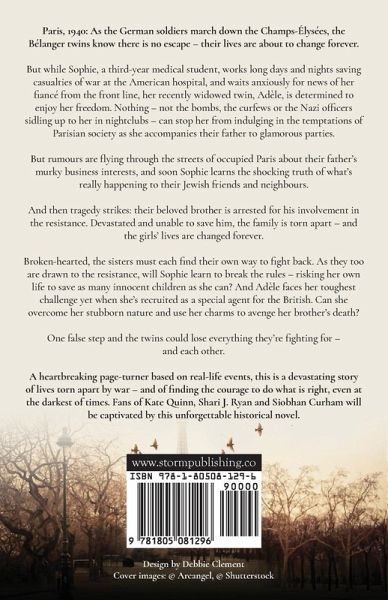 Paris, 1940: As German soldiers march down the Champs-Élysées, Sophie Bélanger grips her medical textbook tighter, knowing her world is about to shatter. While her recently widowed twin sister Adèle dances with the enemy in the glittering nightclubs of occupied Paris, Sophie throws herself into endless shifts at the American hospital, trying to forget her fiancé's silence from the front lines. But when Sophie discovers Jewish families are being hunted and their children left defenceless against Nazi persecution, she cannot stand by - innocent lives hang in the balance. As the Nazi grip on Paris tightens, Sophie plays an increasingly deadly game of cat and mouse with the Gestapo. One false move, one whispered betrayal, could destroy everything - and everyone - she's fighting to protect. A heart-wrenching tale of courage and sacrifice in humanity's darkest hour. Perfect for fans of Kate Quinn and Kristin Hannah.