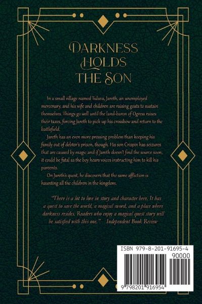 "An engaging tale filled with magic and parental love. Darkness Holds the Son is first the story of a father struggling to save his kids and second that of a king hell-bent on saving his kingdom's future." - Independent Book Review In a small village named Tuluva Jareth, an unemployed mercenary, and his wife and two children are raising goats to sustain themselves. Things go well for them until the land-baron of Ogress raises their taxes, forcing Jareth to pick up his crossbow and return to the battlefield. Jareth has an even more pressing problem than keeping his family out of debtor's prison, though. His son Crispin has seizures that are caused by magic and if Jareth doesn't find the source soon, it could be fatal as the boy hears voices instructing him to kill his father. On Jareth's quest, he discovers that the same affliction is haunting all the children in the kingdom. Join Jareth, his wife, and King Barin in this new adventure as they search the Neverworld and half of Casdamia to find and destroy that which has taken the youth of their world captive. A spin-off, stand-alone novel in the Sword of Cho Nisi world.