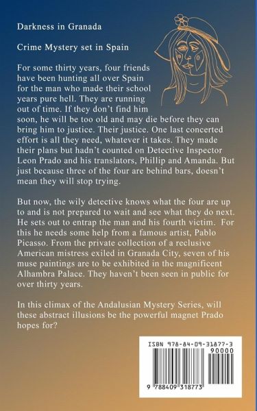 Andalucía, Spain. An enchanting setting for a crime mystery series. All roads lead to Granada, the priceless jewel of Andalucia. Nestling under the snow-capped peaks of the Sierra Nevada and dominating this historic city, is the Alhambra Palace, one of the wonders of the world. When Anne Pennington, the mistress of a US Senator was exiled from Washington DC, she chose this beautiful place as her new home. He was paying, so she didn't stint. Her favorite pastime was collecting paintings, particularly those by Pablo Picasso. Her house was just below the palace and included its own art gallery for her to relish her treasures. After her lover passed, she married, and decided to show her collection of the famous painter's muses to the world. Unbeknown to her, one of these artworks was top of the bucket list of an evil criminal who had been leading DI Prado, with translators Amanda and Phillip, a merry dance all over Andalucía. The now elderly man was also the link to the criminals held behind bars from his cases in Málaga, Ronda, and Vélez-Málaga. They had desperately needed to find him and exact their revenge before he died. In this fourth book of the Andalusian Mystery Series, Prado sets out to entrap him. Anne's paintings would be the bait.