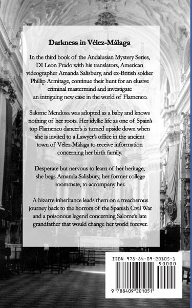 Andalucía, Spain. An enchanting setting for a crime mystery series. Vélez-Málaga is the principal town of La Axarquía, the region to the east of Málaga often compared with Tuscany or Switzerland. This main distribution point for fruits and vegetables is an undiscovered gem of Andalucía, full of ancient monuments and a bustling gypsy community that performs raw, impromptu Flamenco in the central bars and clubs. In this third book of the Andalusian Mystery Series, Salome Mendosa, a popular Flamenco dancer and former roommate of Amanda, receives an invitation from a lawyer in Vélez to learn about her birth family. While there are pleasant surprises, Salome is clearly not welcome by some of the locals. As Salome and Amanda dig into long slumbering legends, they rekindle smoldering jealousy and hatred going back to the Civil War.