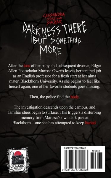 After the loss of her baby and subsequent divorce, Edgar Allan Poe scholar Marissa Owens leaves her tenured job as an English professor for a fresh start at her alma mater, Blackthorn University. As she begins to feel like herself again, one of her favorite students goes missing. Then, the police find the body. The investigation descends upon the campus, and familiar clues begin to surface. This triggers a disturbing memory from Marissa's own dark past at Blackthorn-- one she has attempted to keep buried.
