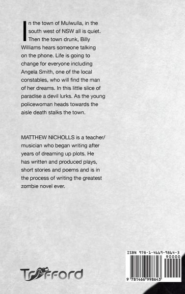 In the town of Mulwulla, in the south west of NSW all is quiet. Then the town drunk, Billy Williams hears someone talking on the phone. Life is going to change for everyone including Angela Smith, one of the local constables, who will find the man of her dreams. In this little slice of paradise a devil lurks. As the young policewoman heads towards the aisle death stalks the town.
