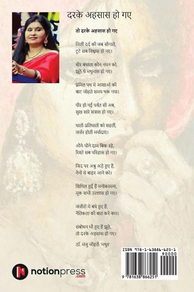 When I received the gifts of pain, Broken all faith. Who holds fast to Nayan, The liars have become honeymooners. In the love path of hopes, Waited tired while waiting. Now the mountain has become a tear, Happiness was all sad. Endured counter-attacks, Dissenting dignities. One and a half prices are being sold, The relationship was all ridiculed. Tears are insistent on stubbornness, To come out of the nain. Desire has become relaxed, Everyone became silent with glee. Tied in chains, What about morality? The addresses have also been false, So the realization was there. Dr. Manju Johri "Madhur"