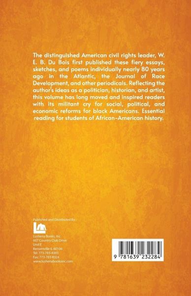 The distinguished American civil rights leader, W. E. B. Du Bois first published these fiery essays, sketches, and poems individually nearly 80 years ago in the Atlantic, the Journal of Race Development, and other periodicals. Reflecting the author's ideas as a politician, historian, and artist, this volume has long moved and inspired readers with its militant cry for social, political, and economic reforms for black Americans. Essential reading for students of African-American history