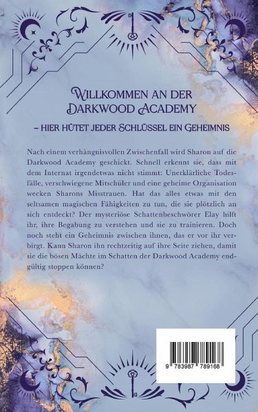 Willkommen an der Darkwood Academy – hier hütet jeder Schlüssel ein Geheimnis Die spannende Urban Fantasy für Fans von Wednesday Nach einem verhängnisvollen Zwischenfall wird Sharon auf die Darkwood Academy geschickt. Schnell erkennt sie, dass mit dem Internat irgendetwas nicht stimmt: Unerklärliche Todesfälle, verschwiegene Mitschüler und eine geheime Organisation wecken Sharons Misstrauen. Hat das alles etwas mit den seltsamen magischen Fähigkeiten zu tun, die sie plötzlich an sich entdeckt? Der mysteriöse Schattenbeschwörer Elay hilft ihr, ihre Begabung zu verstehen und sie zu trainieren. Doch noch steht ein Geheimnis zwischen ihnen, das er vor ihr verbirgt. Kann Sharon ihn rechtzeitig auf ihre Seite ziehen, damit sie die bösen Mächte im Schatten der Darkwood Academy endgültig stoppen können? Erste Leser:innenstimmen „Die Mischung aus magischen Elementen und mysteriösen Intrigen macht diesen Fantasy Roman zu einem echten Pageturner." „Sharon und Jules sind tolle Protagonisten, und die Geheimnisse, die sie an der Academy aufdecken, sind wirklich packend." „Die zauberhafte Welt, die die Autorin geschaffen hat, ist so lebendig und mitreißend – ich konnte gar nicht genug davon bekommen." „Diese Romantasy hat alles, was ich von einem guten Enemies-to-Lovers Roman erwarte: Spannung, Magie, Geheimnisse und eine Prise Romantik."