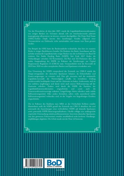 Vor der Finanzkrise, ab dem Jahr 2007, wurde die Liquiditätsfristentransformation von einigen Banken im Vertrauen darauf, sich am Interbankenmarkt jederzeit kostengünstig refinanzieren zu können, exzessiv durchgeführt. Die Hypo Real Estate (HRE)-Tochter Depfa konnte ihre kurzfristigen Kredite aufgrund einer Vertrauenskrise am Geldmarkt nicht zurückzahlen und musste vom Staat gerettet werden. Das Beispiel der HRE hatte der Bankenaufsicht verdeutlicht, dass hier ein massives Risiko in einigen Bankbilanzen besteht. Die Reaktion des Basler Ausschusses auf das zu hohe strukturelle Liquiditätsrisiko einiger Banken war die im Rahmen von Basel III initiierte Net Stable Funding Ratio (NSFR). Seit Ende 2017 finden die Verhandlungen zwischen EU-Kommission, EU-Rat und EU-Parlament über die exakte Ausgestaltung der NSFR im Rahmen der Sondierungen zur Capital Requirements Regulation II (CRR-II) statt. Voraussichtlich wird die Kennzahl ab 2019 bzw. 2020 von allen europäischen Banken und Sparkassen einzuhalten sein. Eine Umsetzung der NSFR entsprechend des Entwurfs zur CRR-II würde die Hauptertragssäulen der deutschen Sparkassen belasten, da Erlöseinbußen und Kostensteigerungen zu erwarten sind. Dies gilt einerseits, weil die strukturelle Liquiditätskennzahl die Notwendigkeit schafft, im vermehrten Umfang minderrentable hochliquide Assets auf der Aktivseite zu halten. Andererseits, weil sie eine stabilere, langfristigere und damit meist auch teurere Refinanzierung auf der Passivseite erfordert. Zudem wird durch die NSFR die Funktion der Liquiditätsfristentransformation eingeschränkt und somit auch die Fristentransformationserträge reduziert. Längerfristige Aktiva erfordern mehr stabile Refinanzierungsmittel. Oder anders formuliert, sofern nicht ausreichend stabile Refinanzierungsmittel vorhanden sind, ist die Vergabe von längerfristigen Krediten eingeschränkt. Die im Rahmen des Studiums zum MBA an der Hochschule Koblenz erstellte Masterthesis stellt die NSFR gemäß des Entwurfs zur CRR II detailliert dar und untersucht die Auswirkungen einer verbindlichen NSFR auf deutsche Sparkassen sowie potentielle NSFR-Steuerungsmaßnahmen. Hierfür erfolgte eine umfangreiche empirische Untersuchung mittels problemzentrierter Interviews deutscher Sparkassen. Aus den gewonnen Erkenntnissen wurden anschließend sechs konkrete Handlungsempfehlungen abgeleitet. Die Arbeit wurde mit der Note 1,0 bewertet.