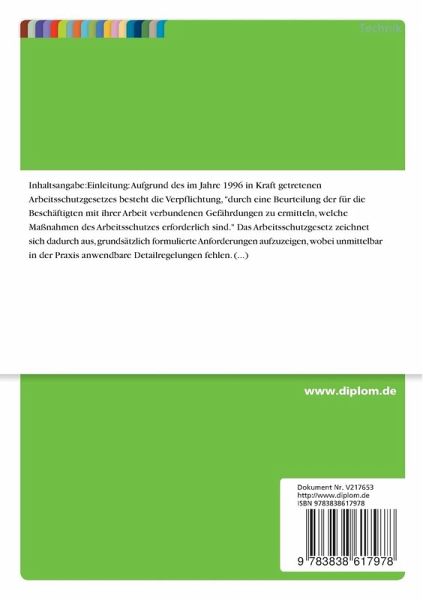 Aufgrund des im Jahre 1996 in Kraft getretenen Arbeitsschutzgesetzes besteht die Verpflichtung, "durch eine Beurteilung der für die Beschäftigten mit ihrer Arbeit verbundenen Gefährdungen zu ermitteln, welche Maßnahmen des Arbeitsschutzes erforderlich sind."