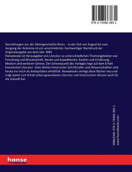 Darstellungen aus der Sittengeschichte Roms - in der Zeit von August bis zum Ausgang der Antonine ist ein unveränderter, hochwertiger Nachdruck der Originalausgabe aus dem Jahr 1881.