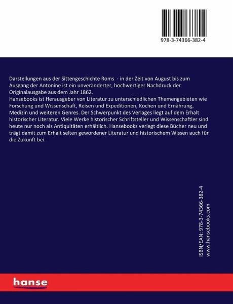 Darstellungen aus der Sittengeschichte Roms - in der Zeit von August bis zum Ausgang der Antonine ist ein unveränderter, hochwertiger Nachdruck der Originalausgabe aus dem Jahr 1862.