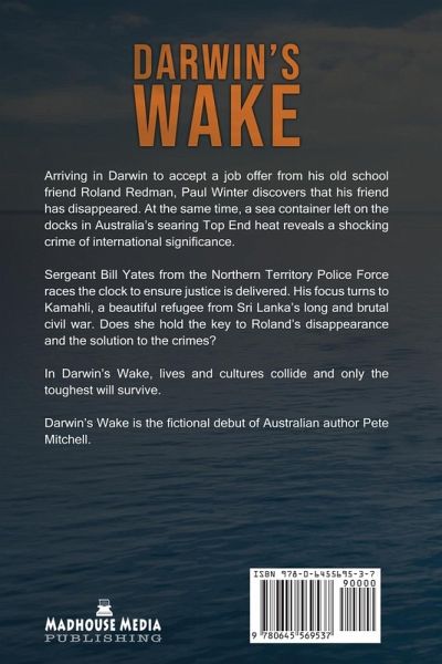Arriving in Darwin to accept a job offer from his old school friend Roland Redman, Paul Winter discovers that his friend has disappeared. At the same time, a sea container left on the docks in Australia's searing Top End heat reveals a shocking crime of international significance. Sergeant Bill Yates from the Northern Territory Police Force races the clock to ensure justice is delivered. His focus turns to Kamahli, a beautiful refugee from Sri Lanka's long and brutal civil war. Does she hold the key to Roland's disappearance and the solution to the crimes? In Darwin's Wake, lives and cultures collide and only the toughest will survive. Darwin's Wake is the fictional debut of Australian author Pete Mitchell.