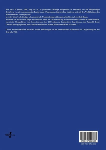 Nachdem ich mich schon längst entschlossen hatte, im Zusammenhang mit meinem Werke über das Menschenhirn, zuerst die Affengehirne, von denen ich nun etwa 250 besitze, zu beschreiben, fing ich an, eine Auswahl dieser Gehirne photographieren und Lichtdrucktafeln von diesen Bildern herstellen zu lassen. [...]