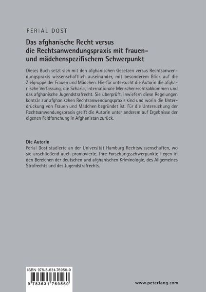 Dieses Buch setzt sich mit den afghanischen Gesetzen versus Rechtsanwendungspraxis wissenschaftlich auseinander, mit besonderem Blick auf die Zielgruppe der Frauen und Mädchen. Hierfür untersucht die Autorin die afghanische Verfassung, die Scharia, internationale Menschenrechtsabkommen und das afghanische Jugendstrafrecht. Sie überprüft, inwiefern diese Regelungen konträr zur afghanischen Rechtsanwendungspraxis sind und worin die Unterdrückung von Frauen und Mädchen begründet ist. Für die Untersuchung der Rechtsanwendungspraxis greift die Autorin unter anderem auf Ergebnisse der eigenen Feldforschung in Afghanistan zurück.