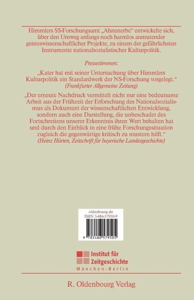 "Kater hat mit seiner Untersuchung über Himmlers Kulturpolitik ein Standardwerk der NS-Forschung vorgelegt." -- Frankfurter Allgemeine Zeitung vom 24.5.1974