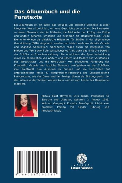 Ein Albumbuch ist ein Werk, das visuelle und textliche Elemente in einer integralen Weise kombiniert, um eine Geschichte zu erzählen. Die Paratexte, zu denen Elemente wie die Titelseite, die Rückseite, der Prolog, der Epilog und andere gehören, umgeben und ergänzen die Haupterzählung. Diese Elemente können als didaktische Hilfsmittel für Schüler in der allgemeinen Grundbildung (EGB) eingesetzt werden und bieten mehrere Vorteile:Visuelle und kognitive Stimulation: Albenbücher regen durch die Integration von Bildern und Text sowohl die Vorstellungskraft als auch das kritische Denken der Schüler an.Sprachentwicklung: Sie erleichtern die Sprachentwicklung durch die Kombination von Wörtern und Bildern und fördern das Verständnis des Wortschatzes und die Konstruktion von Bedeutung. Förderung der Kreativität: Visuelle und textliche Elemente ermöglichen es den Schülern, ihre Kreativität zum Ausdruck zu bringen und die Geschichte auf unterschiedliche Weise zu interpretieren.Förderung der Lesekompetenz: Paraprotexte, wie das Cover und der Prolog, dienen als Einstiegspunkt, der das Interesse der Schüler wecken kann und sie zum Lesen des Hauptwerks motiviert.