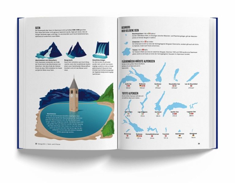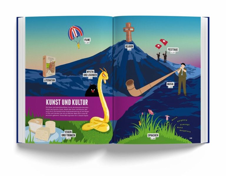 Das Alpenbuch vermittelt auf vergnügliche Art ein tieferes Verständnis für die Alpen. 290 Seiten mit hunderten Infografiken und Illustrationen laden zum Stöbern und Entdecken ein. Über alle Grenzen hinweg blickt das Buch auf die Alpen als einen einzigartigen Kulturraum: Von Geografie bis zu Kulinarik, von Skisport bis zu Mythen und Legenden, von Tieren über Naturschutz bis zu Alpinismus, in Zusammenarbeit mit den Alpenvereinen aus Deutschland, Österreich und Südtirol. Ein Buch für alle, die sich für die Alpen interessieren - ob sie nun die höchsten Gipfel erklettern oder von unten hinaufschauen.