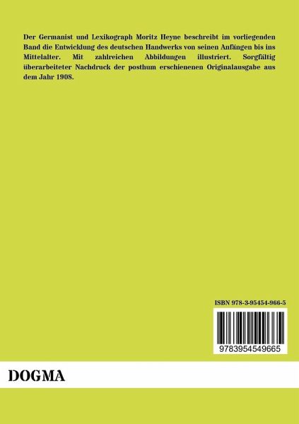 Der Germanist und Lexikograph Moritz Heyne beschreibt im vorliegenden Band die Entwicklung des deutschen Handwerks von seinen Anfängen bis ins Mittelalter. Mit zahlreichen Abbildungen illustriert. Sorgfältig überarbeiteter Nachdruck der posthum erschienenen Originalausgabe aus dem Jahr 1908.
