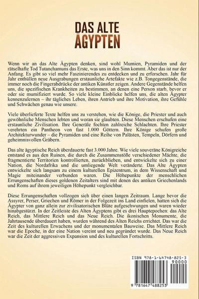 Erforschen Sie die fesselnde Geschichte des Alten Ägyptens Das Alte Ägypten ist eine der faszinierendsten und höchstentwickelten Zivilisationen der bekannten Geschichte. Man erinnert sich an die alten Ägypter wegen ihrer Götter, den Pyramiden, den Pharaonen, der Mumifizierung, der Hieroglyphen, der Landwirtschaft und vielem mehr. Dieses Buch enthüllt die Geheimnisse der fesselnden Welt des Alten Ägyptens, die faszinierenden Geschichten seiner Berühmtheiten wie Echnaton, Ramses des Großen, Königin Kleopatra und des Kindkönigs Tutanchamun. Sie werden etwas über mächtige Götter und die magische Verbindung zwischen der Sonne und dem Volk Ägyptens erfahren und Sie erforschen die grauenhaften Begräbnisrituale, die einen sicheren Weg ins Jenseits garantierten. Entdecken Sie die Geheimnisse einer der großartigsten Gesellschaften, die je existiert haben, und finden Sie heraus, warum es ihr immer noch gelingt, die Aufmerksamkeit der Welt auf sich zu ziehen. Das Buch behandelt unter anderem folgende Themen:Wer waren die alten Ägypter? Ihre Ursprünge, Geschichte und Geographie Wer hatte die Macht inne? Die soziale Struktur des Alten Ägyptens Könige und ihre militärische Macht Die großartigen Pharaonen des Neuen Reichs und ihr Reich Der Niedergang und das Ende der ägyptischen Zivilisation Eine Romanze, Politik und Tragödie: Die Geschichte Kleopatras VII. Religion, Mythologie und Rituale der alten Ägypter Begräbnisglauben und Rituale: Mumifizierung und das Leben nach dem Tod Die Architektur des Alten Ägyptens: Tempel und Pyramiden Und vieles mehr! Kaufen Sie das Buch jetzt, um mehr über das Alte Ägypten zu erfahren!