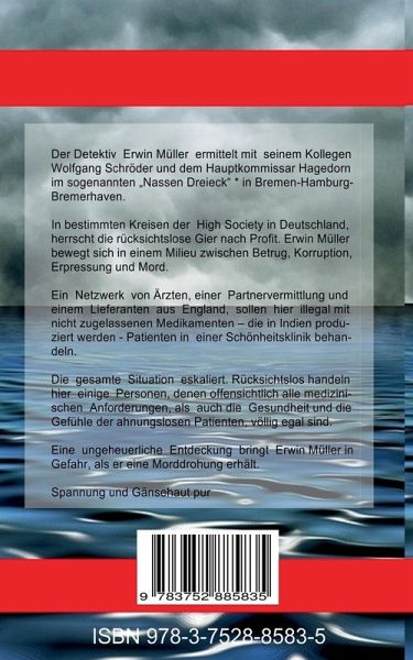 "Das alte Schloss" - ein Pharma-ThrillerDer Schmerz fährt dir durch den ganzen Körper.Als du nachsehen willst was passiert ist, stellst du fest, dass dein Körper sich nicht bewegen lässt. Dir bricht der Schweiß aus.Du fühlst in deinem Gesicht Haare, die dir ausgefallen sind und du kannst nicht sprechen, um eine Schwester zu rufen. Du bist verwirrt, verstehst das Ganze nicht.In deinen Gedanken taucht ein Verdacht auf: Irgendjemand hat es auf dich abgesehen. Aber warum denn? Du wolltest dich doch nur für deinen Mann verschönern lassen.Du willst es nicht wahrhaben und versuchst deinen Körper abzutasten. Kein Gefühl regt sich. Angst, Schmerz und Wut, bringen dich fast um den Verstand.Erst jetzt wird dir bewusst, wie groß die Gefahr wirklich ist.Du willst nicht einfach so sterben.Aber womit kämpfen, wenn du dich nicht bewegen und nicht sprechen kannst.Deine Gedanken hört niemand!Versicherungsdetektiv Erwin Müller ermittelt mit seinem Kollegen Wolfgang Schröder und dem Hauptkommissar Thalheimer in Nord- und Süddeutschland.In bestimmten Kreisen der High Society in Deutschland herrscht die grenzenlose Gier nach Profit. Erwin Müller bewegt sich in einem Milieu zwischen Betrug, Korruption, Erpressung und Mord.Ein Netzwerk von Ärzten, einer Partnervermittlung und einem Lieferanten aus England sollen hier illegal mit nicht zugelassenen Medikamenten - die in Indien produziert werden - Patienten in einer Schönheitsklinik behandeln.Die gesamte Situation eskaliert. Rücksichtslos handeln hier einige Personen, denen offensichtlich alle medizinischen Anforderungen als auch die Gesundheit und die Gefühle der ahnungslosen Patienten völlig egal sind.Eine ungeheuerliche Entdeckung bringt Erwin Müller in Gefahr, als er eine Morddrohung erhält.Spannung und Gänsehaut pur.