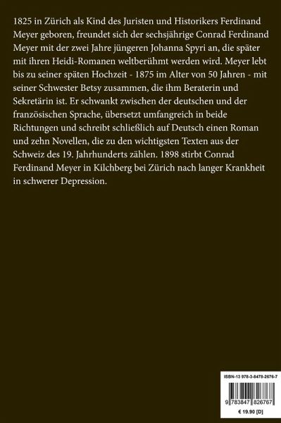 Conrad Ferdinand Meyer: Das Amulett. Novelle Lesefreundlicher Großdruck in 16-pt-Schrift Großformat, 210 x 297 mm Berliner Ausgabe, 2019 Durchgesehener Neusatz mit einer Biographie des Autors bearbeitet und eingerichtet von Theodor Borken Erstdruck: Leipzig (H. Haessel) 1873. Textgrundlage ist die Ausgabe: Conrad Ferdinand Meyer: Sämtliche Werke in zwei Bänden. Vollständiger Text nach den Ausgaben letzter Hand. Mit einem Nachwort von Erwin Laaths, München: Winkler, 1968. Umschlaggestaltung von Thomas Schultz-Overhage unter Verwendung des Bildes: G. Durand, Duell im Bois de Boulogne von Paris, 1874. Gesetzt aus der Minion Pro, 16 pt. Über den Autor: 1825 in Zürich als Kind des Juristen und Historikers Ferdinand Meyer geboren, freundet sich der sechsjährige Conrad Ferdinand Meyer mit der zwei Jahre jüngeren Johanna Spyri an, die später mit ihren Heidi-Romanen weltberühmt werden wird. Meyer lebt bis zu seiner späten Hochzeit - 1875 im Alter von 50 Jahren - mit seiner Schwester Betsy zusammen, die ihm Beraterin und Sekretärin ist. Er schwankt zwischen der deutschen und der französischen Sprache, übersetzt umfangreich in beide Richtungen und schreibt schließlich auf Deutsch einen Roman und zehn Novellen, die zu den wichtigsten Texten aus der Schweiz des 19. Jahrhunderts zählen. 1898 stirbt Conrad Ferdinand Meyer in Kilchberg bei Zürich nach langer Krankheit in schwerer Depression.