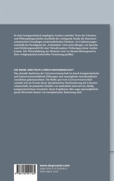 In einer komparatistisch angelegten Analyse zentraler Texte der Literatur- und Philosophiegeschichte erschließt die vorliegende Studie die historisch-semantischen Grundlagen strukturalistischen Denkens. An Umbesetzungen innerhalb des Paradigmas der 'Artikulation' wird nachvollzogen, wie Sprache zum Erklärungsmodell für eine Vielzahl anderer Ordnungssysteme werden konnte. Die Theoriebildung der Moderne wird vor diesem Hintergrund in ihrer weitgespannten kulturellen Vernetzung greifbar.
