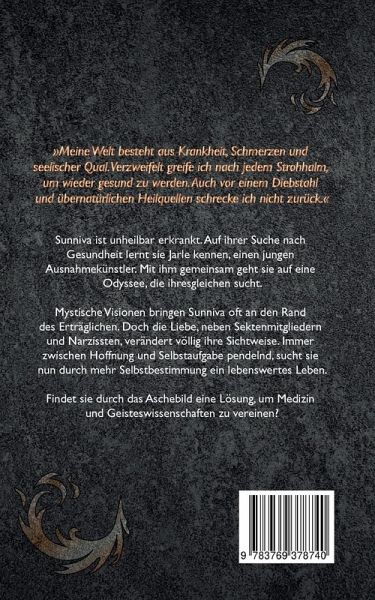 Ab heute wird deine Seele nach Aschebildern suchen. Die krebskranke Sunniva will nur mehr eines im Leben erreichen: Gesundheit. In ihrer Verzweiflung greift sie nach jedem Strohhalm und lässt sich auch von einem dubiosen Angebot nicht abschrecken. Doch was anfangs als Glücksfall erscheint, wird später zu einer zusätzlichen Belastung für sie. Gefangen in einem Labyrinth aus Kunst, Macht, Geld und Gier kann sie keinem mehr wirklich trauen. Nicht einmal dem höchst talentierten Kunstmaler Jarle, in den sie sich Hals über Kopf verliebt hat. Mystische Erlebnisse und verworrene Geschichten um ihre Familie fordern ihren Tribut. Die Krankheit schreitet nach zwischenzeitlichen scheinbaren Besserungen immer schneller voran. Ein uraltes Geheimnis, das die überlieferten Geschichten der Bibel auf den Kopf stellt, muss behütet werden. Ansonsten ist nicht nur sie in Gefahr, sondern die Seelen aller Menschen auf dieser Erde. Bevor Sunniva eine Entscheidung trifft, muss sie sich ihrer größten Angst stellen.