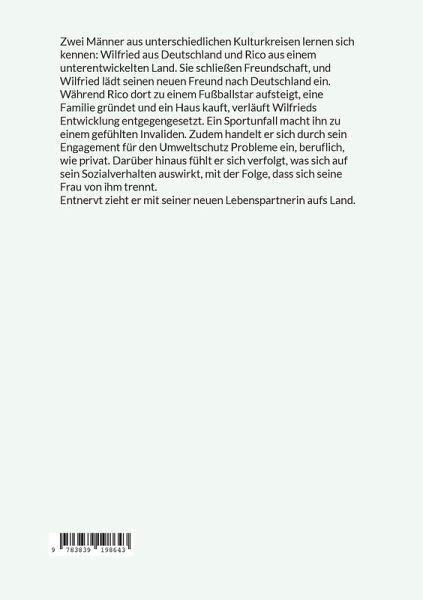 Zwei Männer aus unterschiedlichen Kulturkreisen lernen sich kennen: Wilfried aus Deutschland und Rico aus einem unterentwickelten Land. Sie schließen Freundschaft, und Wilfried lädt seinen neuen Freund nach Deutschland ein. Während Rico dort zu einem Fußballstar aufsteigt, eine Familie gründet und ein Haus kauft, verläuft Wilfrieds Entwicklung entgegengesetzt. Ein Sportunfall macht ihn zu einem gefühlten Invaliden. Zudem handelt er sich durch sein Engagement für den Umweltschutz Probleme ein, beruflich, wie privat. Darüber hinaus fühlt er sich verfolgt, was sich auf sein Sozialverhalten auswirkt, mit der Folge, dass sich seine Frau von ihm trennt. Entnervt zieht er mit seiner neuen Lebenspartnerin aufs Land.