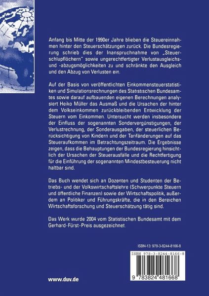 Auf der Basis von veröffentlichten Einkommensteuerstatistiken und Simulationsrechnungen des Statistischen Bundesamtes sowie darauf aufbauenden eigenen Berechnungen analysiert Heiko Müller das Ausmaß und die Ursachen der hinter dem Volkseinkommen zurückbleibenden Entwicklung der Steuern vorm Einkommen. Untersucht werden insbesondere der Einfluss der sogenannten Sondervergünstigungen, der Verlustrechnung, der Sonderausgaben, der steuerlichen Berücksichtigung von Kindern und der Tarifänderungen auf das Steueraufkommen im Betrachtungszeitraum. Die Ergebnisse zeigen, dass die Behauptungen der Bundesregierung hinsichtlich der Ursachen der Steuerausfälle und die Rechtfertigung für die Einführung der sogenannten Mindestbesteuerung nicht haltbar sind.