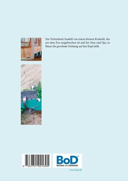 Das Vorlesebuch handelt von einem kleinen Krokodil, das aus dem Zoo ausgebrochen ist und bei Oma und Opa zu Hause die gewohnte Ordnung auf den Kopf stellt.