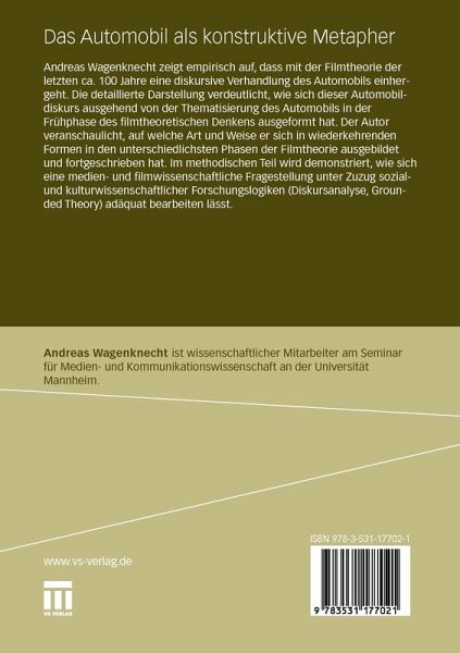 Andreas Wagenknecht zeigt empirisch auf, dass mit der Filmtheorie der letzten ca. 100 Jahre eine diskursive Verhandlung des Automobils einhergeht. Die detaillierte Darstellung verdeutlicht, wie sich dieser Automobildiskurs ausgehend von der Thematisierung des Automobils in der Frühphase des filmtheoretischen Denkens ausgeformt hat. Der Autor veranschaulicht, auf welche Art und Weise er sich in wiederkehrenden Formen in den unterschiedlichsten Phasen der Filmtheorie ausgebildet und fortgeschrieben hat. Im methodischen Teil wird demonstriert, wie sich eine medien- und filmwissenschaftliche Fragestellung unter Zuzug sozial- und kulturwissenschaftlicher Forschungslogiken (Diskursanalyse, Grounded Theory) adäquat bearbeiten lässt.