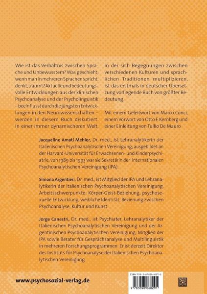 Wie ist das Verhältnis zwischen Sprache und Unbewusstem? Was geschieht, wenn man in mehreren Sprachen spricht, denkt, träumt? Aktuelle und bedeutungsvolle Entwicklungen aus der klinischen Psychoanalyse und der Psycholinguistik - beeinflusst durch die jüngsten Entwicklungen in den Neurowissenschaften - werden in diesem Buch diskutiert. In einer immer dynamischeren Welt, in der sich Begegnungen zwischen verschiedenen Kulturen und sprachlichen Traditionen multiplizieren, ist das erstmals in deutscher Übersetzung vorliegende Buch von größter Bedeutung.