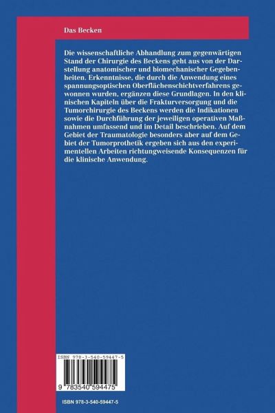 1 Einleitung.- 2 Anatomie und Biomechanik.- 2.1 Anatomie und klinische Biomechanik des Beckenrings.- 2.2 Experimentelle Untersuchungen zur Stabilität des Beckenrings.- 2.3 Spannungsoptische Darstellung der Kraftlinien am Beckenring.- 3 Frakturen.- 3.1 Verletzungen des Beckenrings.- 3.2 Radiologische Diagnostik bei Beckenverletzungen.- 3.3 Spezielles diagnostisch-therapeutisches Management beim Polytraumatisierten (dargestellt anhand des Krankenguts der Chirurgischen Klinik Innenstadt München von 1986-1991).- 3.4 Indikation und operative Versorgung von Beckenringverletzungen.- 3.5 Acetabulumfrakturen.- 3.6 Nachbehandlung.- 3.7 Spätkomplikationen.- 4. Tumoren des Beckengürtels.- 4.1 Klinik.- 4.2 Diagnostik.- 4.3 Art und Häufigkeit.- 4.4 Kompartments des Beckens.- 4.5 Therapeutische Prinzipien.- 4.6 Therapieplanung.- 4.7 Operative Verfahren.- 4.8 Operationsindikation.- 4.9 Ersatzmaterialien.- 4.10 Operationstechnik.- 4.11 Resultate nach Tumorresektionen.- 4.12 Tumorresektion und Ersatzoperation - Klinische Beispiele.- 4.13 Experimentelle Untersuchung der Primärstabilität individuell angefertigter Beckenteilprothesen durch ein oberflächenspannungsoptisches Verfahren.- 5. Abschließende Zusammenfassung.- Literatur.