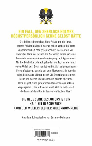 Der brillante Psychologe Hans Rekke und die junge, clevere Polizistin Micaela Vargas haben soeben ihren ersten gemeinsamen Fall gelöst. Da steht plötzlich ein Mann vor Rekkes Tür und zeigt ihm ein Foto seiner Frau, das ihm kürzlich zufällig in die Hände gefallen ist. Im Hintergrund ist der Markusdom in Venedig zu sehen. Das Problem: Die Frau ist vor Jahren nicht von einem Abendspaziergang zurückgekehrt und schon lange für tot erklärt worden. Die Ermittlungen stürzen Rekke und Vargas auch in private Abgründe ..._