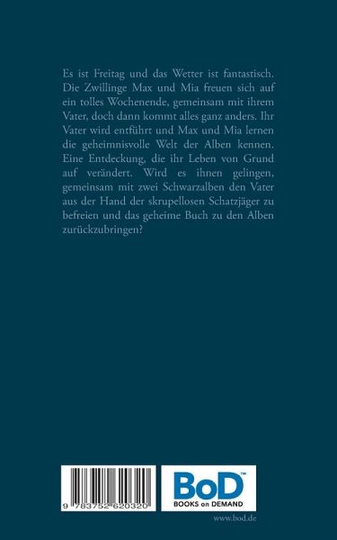 Es ist Freitag und das Wetter ist fantastisch. Die Zwillinge Max und Mia freuen sich auf ein tolles Wochenende, gemeinsam mit ihrem Vater, doch dann kommt alles ganz anders als sie es sich vorgestellt hatten. Ihr Vater wird entführt und Max und Mia lernen die geheimnisvolle Welt der Alben kennen. Eine Entdeckung, die ihr Leben von Grund auf verändert. Wird es ihnen gelingen, gemeinsam mit zwei Schwarzalben den Vater aus der Hand der skrupellosen Schatzjäger zu befreien und das geheime Buch zu den Alben zurückzubringen?