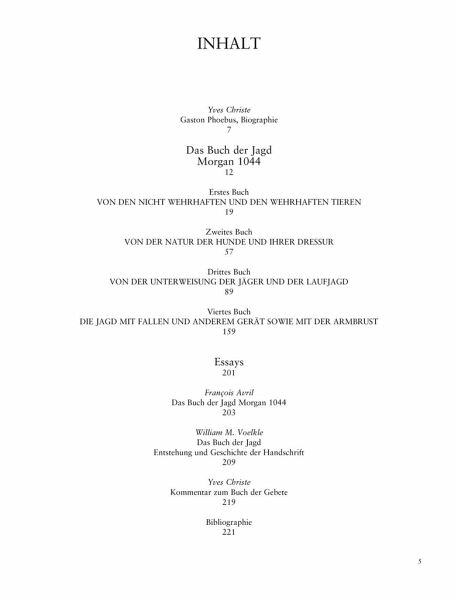 Das berühmte Jagdbuch als Bildband: vollständiger Text mit deutscher Übersetzung und sämtlichen MiniaturenTiere im Mittelalter: zeitgenössische Verhaltensstudien, Tipps zu Unterbringung und PflegeBärenfallen, Kesseltreiben und Hundemeute: lebendig beschriebene JagdszenenExquisit illuminierte Handschrift aus der Werkstatt des Pariser Bedford-MeistersMit Erläuterungen zu Urheber, Entstehung und Geschichte des Manuskriptes