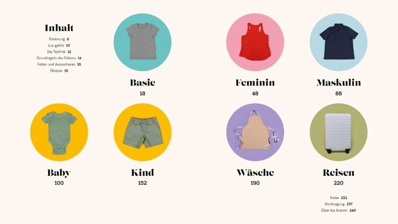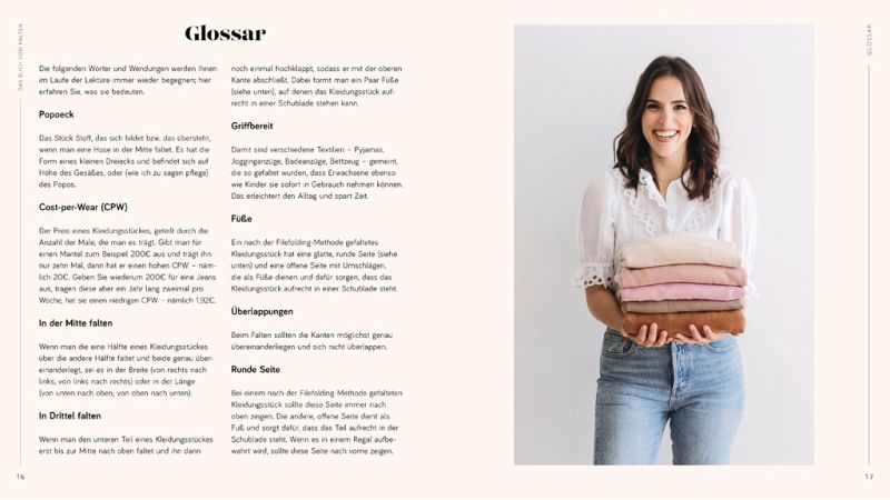 »Der Kampf mit dem Kleider Chaos könnte hiermit vorbei sein. [...] Über 100 Anleitungen, wie es richtig geht.« Rosemarie Vielreicher, ABENDZEITUNG MÜNCHEN »Bei Janelle Cohen heißt es: endlich mehr Platz im Kleiderschrank mit Faltanleitungen für jedes Stück.« Claus Dreckmann, BUNTE »Janelle Cohen ist Expertin in Sachen Organisieren und Falten. In 'Das Buch vom Falten' zeigt sie Schritt für Schritt, wie man Wäsche ordentlich zusammenlegt und gibt hilfreiche Tipps.« Alexandra Miebach, EXPRESS »Vom Babystrampler über die Schürze bis zum Spannbettlaken wird in dem Buch alles in praktische Form gebracht.« Carmen Oster, KLEINE ZEITUNG »Ich hatte tatsächlich mehr Platz und Übersicht in meinen Fächern - und lange nicht mehr so viel Spaß beim Wäschefalten.« Anke Schwarze, LIBORIUS MAGAZIN »Marie Kondo hat das Aufräumen medienwirksam aufgegeben. Damit alles seine Ordnung hat, nehmen andere ihren Platz ein. Etwa Janelle Cohen mit 'Das Buch vom Falten'.« Daniel Kalt, DIE PRESSE