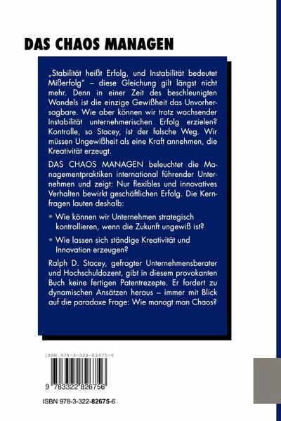 Dem sprichwörtlich kreativen Chaos durch Kontrolle den Garaus machen, wäre eindeutig der falsche Weg. Ralph D. Stacey beleuchtet die Managementpraktiken international führender Unternehmen und zeigt: Nur flexibles und innovatives Verhalten bewirkt geschäftlichen Erfolg. Und das ist ohne Kreativität nicht möglich.