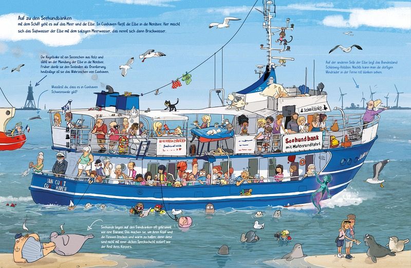 Begleite eine Gruppe von Kindern bei ihrer geheimnisvollen Schatzsuche, ein Hochzeitspaar und seine liebenswert griesgrämigen Schwiegereltern, suche die verlorengegangene Oma oder schaue, ob der Camper wirklich einer Meerjungfrau begegnet. In diesem Wimmelbuch kannst du mehr als zwanzig Geschichten rundum Cuxhavens sehenswerteste Orte entdecken. Suche dir immer wieder eine neue Figur aus und verfolge ihre Abenteuer über alle Wimmelseiten hinweg. Dabei erfährst du allerhand Wissenswertes über die Stadt an der Nordseeküste und den ein oder anderen Geheimtipp, den du garantiert nicht im Reiseführer findest.Dieses Wimmelbuch ist eine Liebeserklärung an die Nordsee, das Lachen, die Liebe und das Leben.