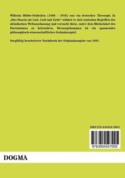 Wilhelm Hübbe-Schleiden (1846 1916) war ein deutscher Theosoph. In Das Dasein als Lust, Leid und Liebe widmet er sich zentralen Begriffen der altindischen Weltanschauung und versucht diese, unter dem Blickwinkel des Darwinismus zu beleuchten. Herausgekommen ist ein spannendes philosophisch-wissenschaftliches Gedankenspiel.