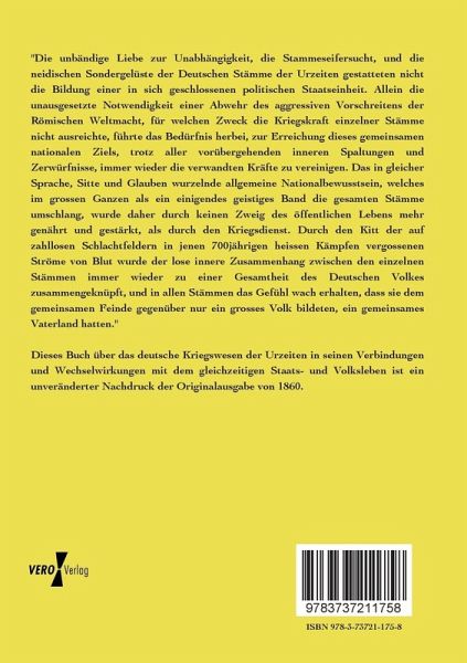 Dieses Buch über das deutsche Kriegswesen der Urzeiten in seinen Verbindungen und Wechselwirkungen mit dem gleichzeitigen Staats- und Volksleben ist ein unveränderter Nachdruck der Originalausgabe von 1860.