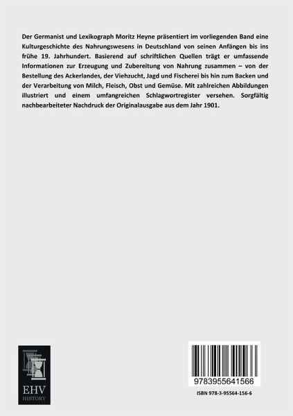 Der Germanist und Lexikograph Moritz Heyne präsentiert im vorliegenden Band eine Kulturgeschichte des Nahrungswesens in Deutschland von seinen Anfängen bis ins frühe 19. Jahrhundert. Basierend auf schriftlichen Quellen trägt er umfassende Informationen zur Erzeugung und Zubereitung von Nahrung zusammen von der Bestellung des Ackerlandes, der Viehzucht, Jagd und Fischerei bis hin zum Backen und der Verarbeitung von Milch, Fleisch, Obst und Gemüse. Mit zahlreichen Abbildungen illustriert und einem umfangreichen Schlagwortregister versehen. Sorgfältig nachbearbeiteter Nachdruck der Originalausgabe aus dem Jahr 1901.