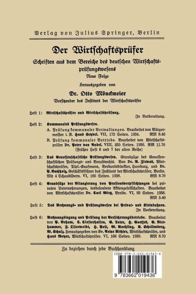 A. Einleitung. Begriff und Wesen der Pflichtprüsung.- B. Die Hauptprobleme des deutschen Pflichtprüsungsrechts und der deutschen Pslichtprüsungspraxis.- C. Möglichkeiten und Grenzen des Pflichtprüfungswesens.- I. Die pflichtprüfungsrechtlichen Bestimmungen für die private und öffentliche Wirtschaft.- Erster Teil: Die pflichtprüfungsrechtlichen Bestimmungen für die private Wirtschaft.- A. Die aktienrechtlichen Pflichtprüfungen.- 1. Die Prüfung des Jahresabschlusse.- 2. Die Gründungsprüfung.- 3. Die Sonderprüfung der AG..- 4. Strafvorschristen.- B. Die Pflichtprüfung der Gesellschaften mit beschränkter Haftung.- C. Die Pflichtprüfung der eigetragenen Genossenschaften.- Die Pflichtprüfung der gemeinnüßigen Wohnungsunternehmen.- D. Die Rechnungsabschlußprüfung der privaten Versicherungsunternehmungen und Bausparkassen.- E. Die Pflichtprüfungen für die privaten Kreditinstitute.- 1. Die Jahresabschlußprüfung.- 2. Prüfungen nach dem Reichsgeseß über das Krediwesen.- F. Die Pflichtprüfung der Rabattsparvereinigungen.- 1. Geseß über Preisnachlässe (Rabattgeseß) vom 25. 11. 1933.- 2. VD. Zur Durchführung des Geseßes über Presnachlässe (Rabattgeseß) vom 21. 2. 1934.- G. Die Rechnugnsabschlußprüfung der Lagerhausanstalten.- Zweiter Teil: Die pflichtprüfungsrechtlichen Bestimmungen für die Wirtschaftsbetriebe der öffentlichen Land.- A. Die allgemeinen Vorschriften.- 1. Verordnung des Reichspräsidenten zur Sicherung von Wirtschaft und Finanzen vom 6. Okt. 1931.- 2. Durchführungsverdnung vom 30. März 1933.- B. Die wichtigsten Sonderregelungen für bestimmte Wirtschaftszweige.- 1. Die Pflichtabschlußprüfung der öffentlich-rechtlichen Versicherungsanstalten.- 2. Die Pflichtprüfung der öffentlich-rechtlichen Kreditinstitute.- 3. DiePflichtprüfungen der öffentlichen Sparkassen.- C. Die einschlägigen Bestmmungen der Reichshaushaltsordnung und der Haushaltsgeseße der Länder.- 1. Für die Wirtschaftsbetriebe des Reichs.- 2. Für die Wirtschaftsbetriebe der Länder.- 3. Sonderregelung für Preußen.- Dritter Teil: Übersicht 0066cber das Berufsrecht der öffentlich bestellten Wirtschaftsprüfer unter Angabe der Fundstellen.- II. Übersicht über das Schrifttum des deutschen Pflichtprügungswesens.- A. Allgemeines Schrifttum über das Pflichtprüfungswesen und die Pflichtprüfer.- B. Das Schrifttum über die einzelnen Pflichtprüfungsgebiete.- C. Das Schrifttum über Einzelfragen des Prüfungsinhalts und der Prüfungstechnik.