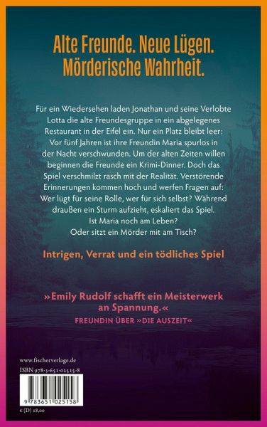 Das perfide Krimi-Dinner: der abgründige Locked-Room-Thriller mit überraschenden Twists bis zum Schluss, um Freundschaft, Verrat und Tod. Von Emily Rudolf - Psycho-Spannung made in Germany.