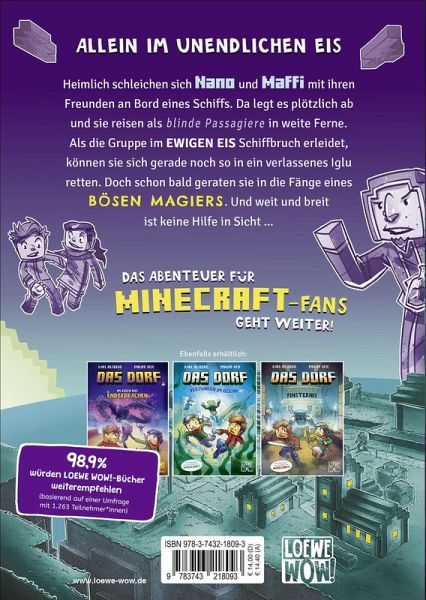 Allein im unendlichen Eis Heimlich schleichen sich Nano und Maffi mit ihren Freunden an Bord eines Schiffs. Da legt es plötzlich ab und die Kinder reisen als blinde Passagiere in weite Ferne. Als sie im ewigen Eis Schiffbruch erleiden, retten sie sich in ein verlassenes Iglu. Doch schon bald geraten sie in die Fänge eines bösen Magiers. Und weit und breit ist keine Hilfe in Sicht ... Das Abenteuer für Minecraft-Fans geht weiter! Loewe Wow! meets Minecraft: Der siebte Band der spannenden Kinderbuch-Reihe für Jungs und Mädchen ab 8 Jahren überzeugt durch ganz viel Action, Humor und coole…mehr