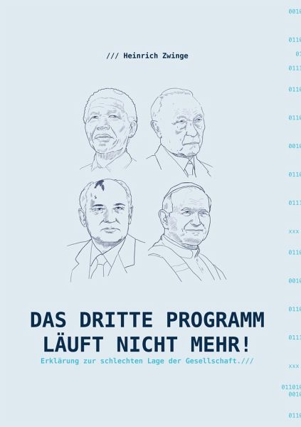 Das Buch ist nach fast zwanzig Jahren fertig und enthält die Gedanken und Erklärungen des Schlossermeisters Heinrich Zwinge über die Welt. Er nimmt die Welt in einem schlechten Zustand wahr und sucht nach Erklärungen. Zentral ist der Gedanke des "Erwachsen werden" oder besser des "Nicht Erwachsen Werden". Um Erwachsen zu werden, benötigt die Menschheit drei Programme. Die ersten beiden Programme sind Natur gegeben. Das sind Wachstum des Körpers und Lernen bis zum Tode sind naturgegeben. Entscheidend ist das Erwachsen werden im Geiste und Verstand, das "Dritte Programm". Jedoch haben die meisten Menschen das "Dritte Programm" nicht eingeschaltet. Die Unfähigkeit das "Dritte Programm" zu nutzen, welche durch alle wesentlichen Bereiche der Gesellschaft geht, erklärt und beschreibt Heinrich Zwinge in seinem Buch. Im Zentrum der Zukunft sieht er die Kinder, die aber nicht erzogen, sondern betreut werden sollten, damit sie dann das "Dritte Programm" nutzen und sich die Menschheit endlich zu dem entwickelt, was möglich, gerecht und notwendig ist, damit die Erde überlebt.