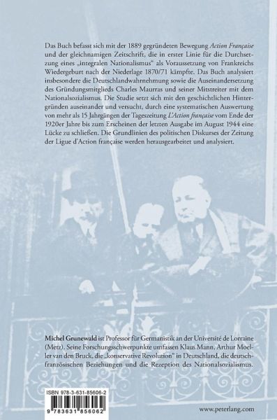 Das Buch befasst sich mit der 1889 gegründeten Bewegung Action Française und der gleichnamigen Zeitschrift, die in erster Linie für die Durchsetzung eines «integralen Nationalismus» als Voraussetzung von Frankreichs Wiedergeburt nach der Niederlage 1870/71 kämpfte. Das Buch analysiert insbesondere die Deutschlandwahrnehmung sowie die Auseinandersetzung des Gründungsmitglieds Charles Maurras und seiner Mitstreiter mit dem Nationalsozialismus. Die Studie setzt sich mit den geschichtlichen Hintergründen auseinander und versucht, durch eine systematischen Auswertung von mehr als 15 Jahrgängen der Tageszeitung L'Action française vom Ende der 1920er Jahre bis zum Erscheinen der letzten Ausgabe im August 1944 eine Lücke zu schließen. Die Grundlinien des politischen Diskurses der Zeitung der Ligue d'Action française werden herausgearbeitet und analysiert.