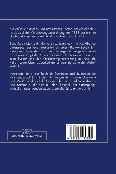 Das Buch stellt das neue Entsorgungssystem umfassend dar, analysiert es unter ökonomischen Effizienzgesichtspunkten und zeigt erforderliche Korrekturen auf.