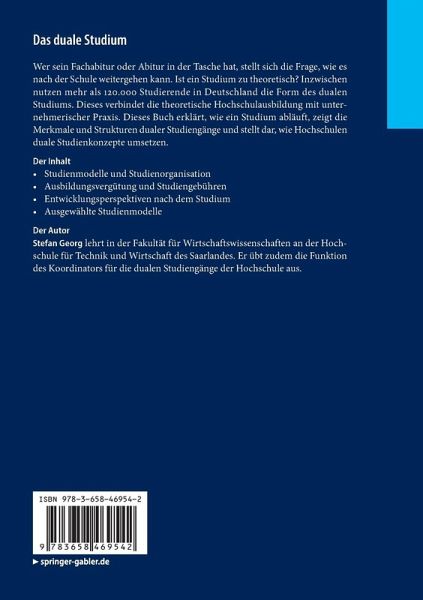 Wer sein Fachabitur oder Abitur in der Tasche hat, stellt sich die Frage, wie es nach der Schule weitergehen kann. Ist ein Studium zu theoretisch? Inzwischen nutzen mehr als 120.000 Studierende in Deutschland die Form des dualen Studiums. Dieses verbindet die theoretische Hochschulausbildung mit unternehmerischer Praxis. Dieses Buch erklärt, wie ein Studium abläuft, zeigt die Merkmale und Strukturen dualer Studiengänge und stellt dar, wie Hochschulen duale Studienkonzepte umsetzen.